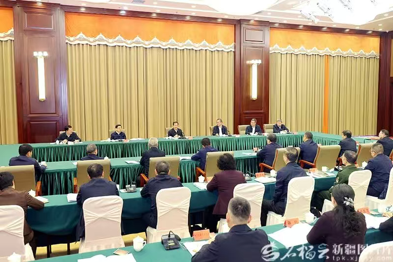 10月29日,自治区党委书记、兵团党委第一书记、第一政委陈小江听取哈密市工作汇报,宣讲党的二十届四中全会精神。石榴云/新疆日报记者 崔志坚摄