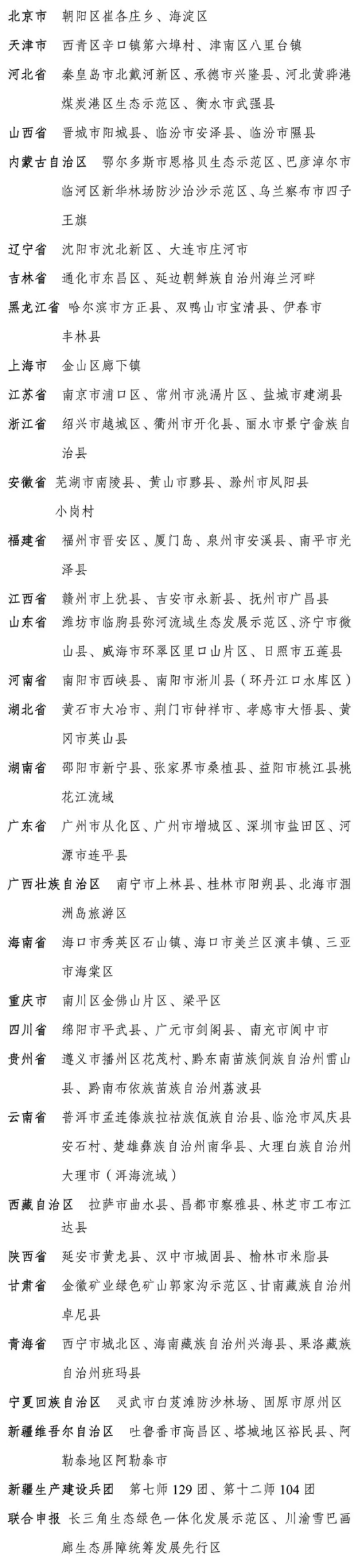 为公开、公平地开展生态文明建设示范区和“绿水青山就是金山银山”实践创新基地评选工作,现对2025年生态文明建设示范区和“绿水青山就是金山银山”实践创新基地拟命名名单进行公示: